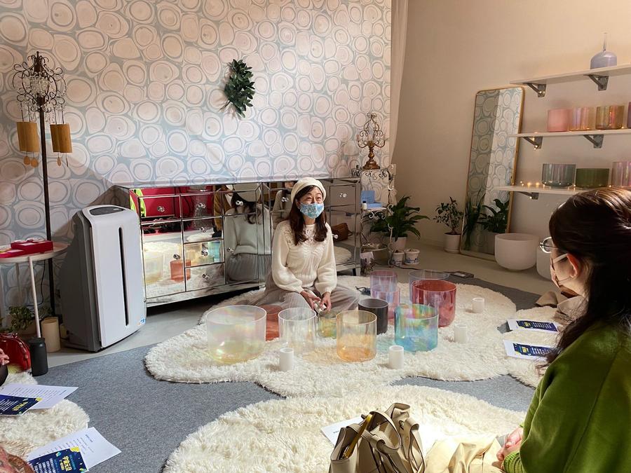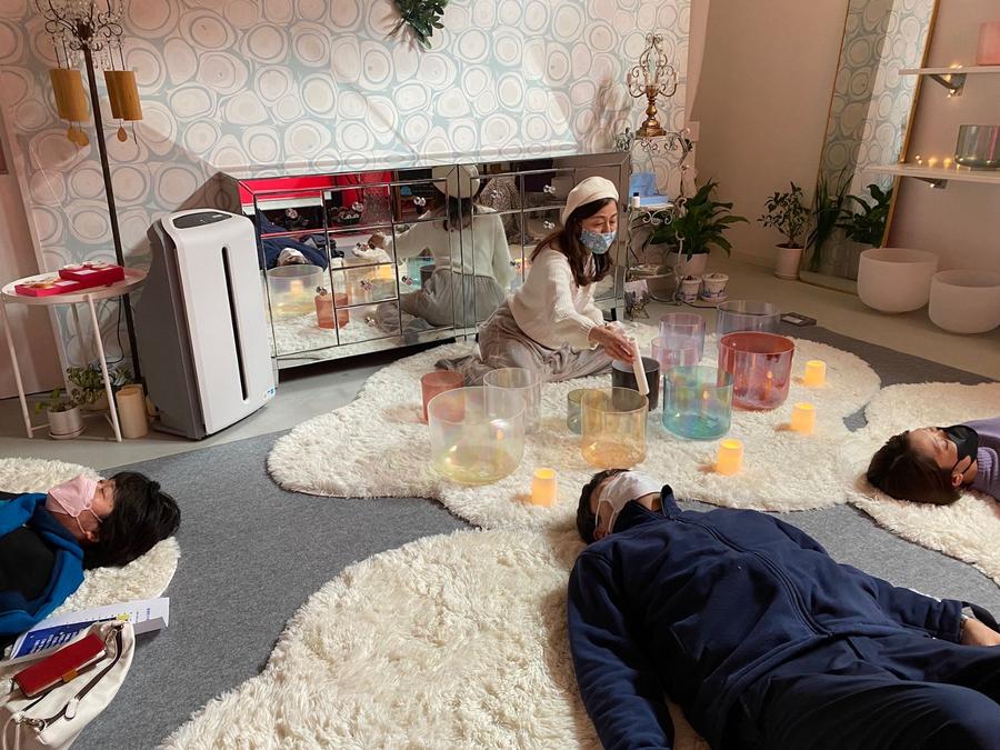 クリスタルボウル音浴は静かな空間で横になって体験(椅子対応可)をいたします。