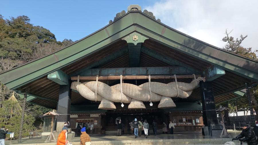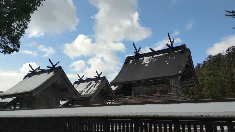 出雲大社の八足門内特別拝観が、開催されるのを偶然ネットニュース配信で見つけ、即、相棒さんに相談。 快く快諾の旨、仕事シフトとの睨めっこで、日程調整! 出雲市内での宿泊が条件の項目でもあったので、普段はギリギリまで、宿泊施設など押さえた事も無いのに、早々にネット予約! 出雲大社からは、少し離れていましたが、駅前のビジネスで手を打ちました。初出雲市泊、初出雲駅前でしたが、少し戸惑いながら、快適に一泊! 生憎の今期最強最長寒波の中の、出雲市宿泊でしたが停滞することなく、スムーズに進行できました。 これも、お導きのご縁の御陰様かな? 日曜日の拝観、前日からの宿泊でしたが、久々の大雪の中移動も進行も滞りなく、普段入ることの出来ない普段と違う参拝をさせて戴くことができました。 欲を言わしていただけるのであれば、八足門内を一周散策させてもらい、普段観られない裏側まで観たかったのが、少し後ろ髪引かれる気持ちです。 今迄の参拝とは、違った景色と感覚が味わえ、冬ならではの景色と出雲大社が味わえたのは、私の思い出の中の忘れられない、人生の1ページとなりました。 スタッフの方々の、快活な進行おもてなしで、気持ち良く過ごさせて戴けた1日となったことに、間違いはありません。 本当にイイ体験をさせて戴き感謝・感謝です。 ありがとうございました。